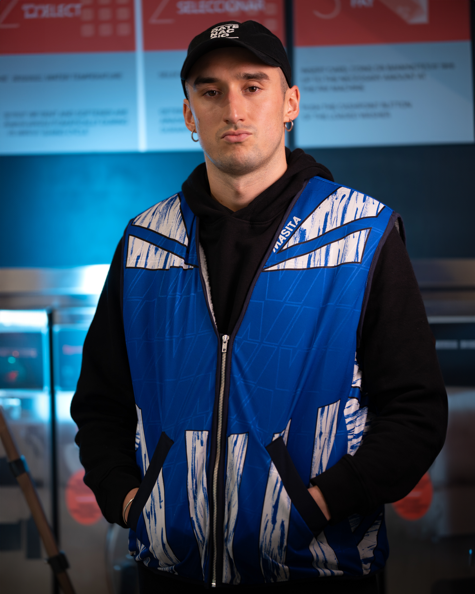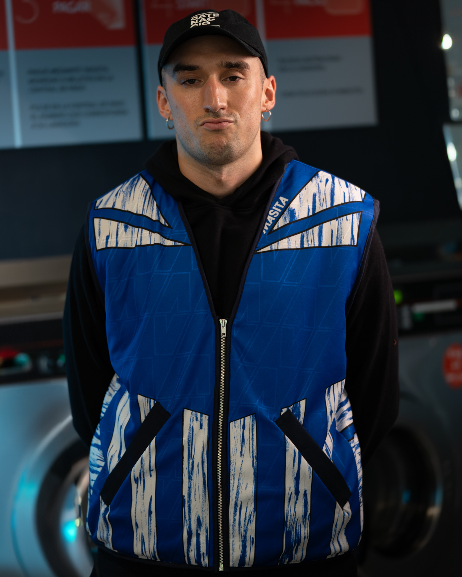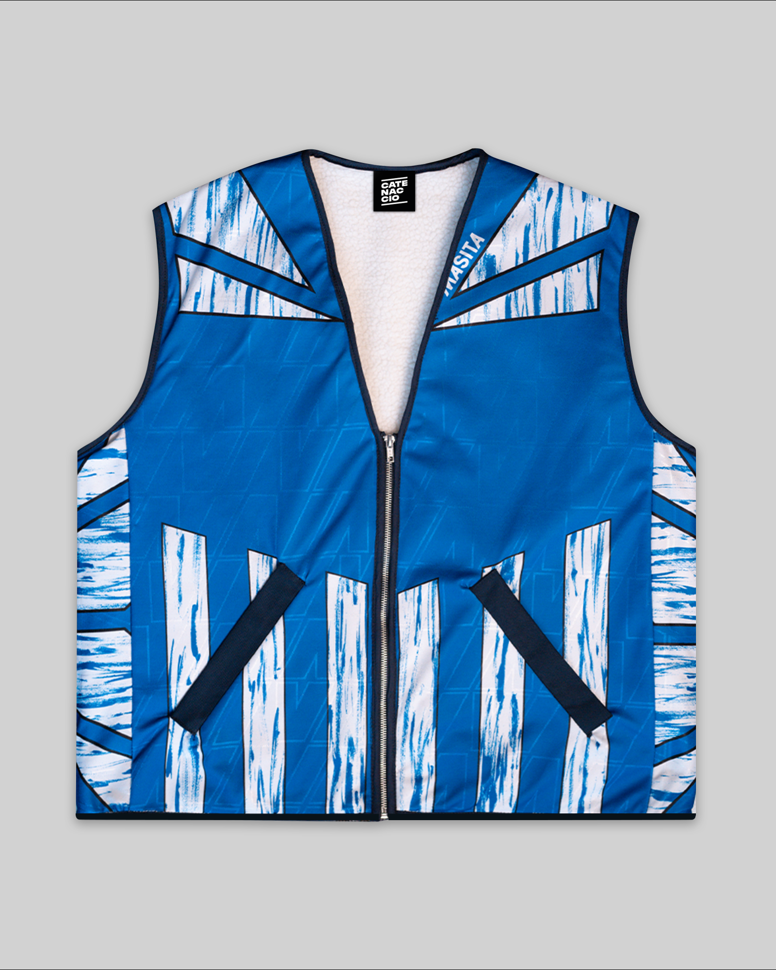 Chaleco abrigado confeccionado a partir del reciclaje de una camiseta de fútbol vintage.