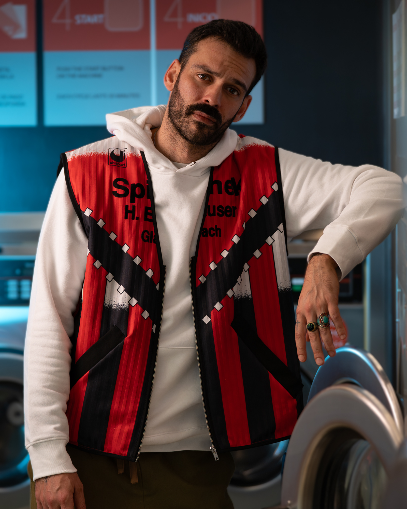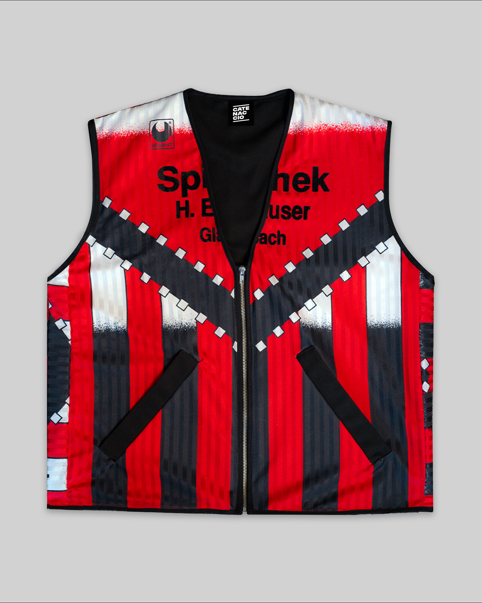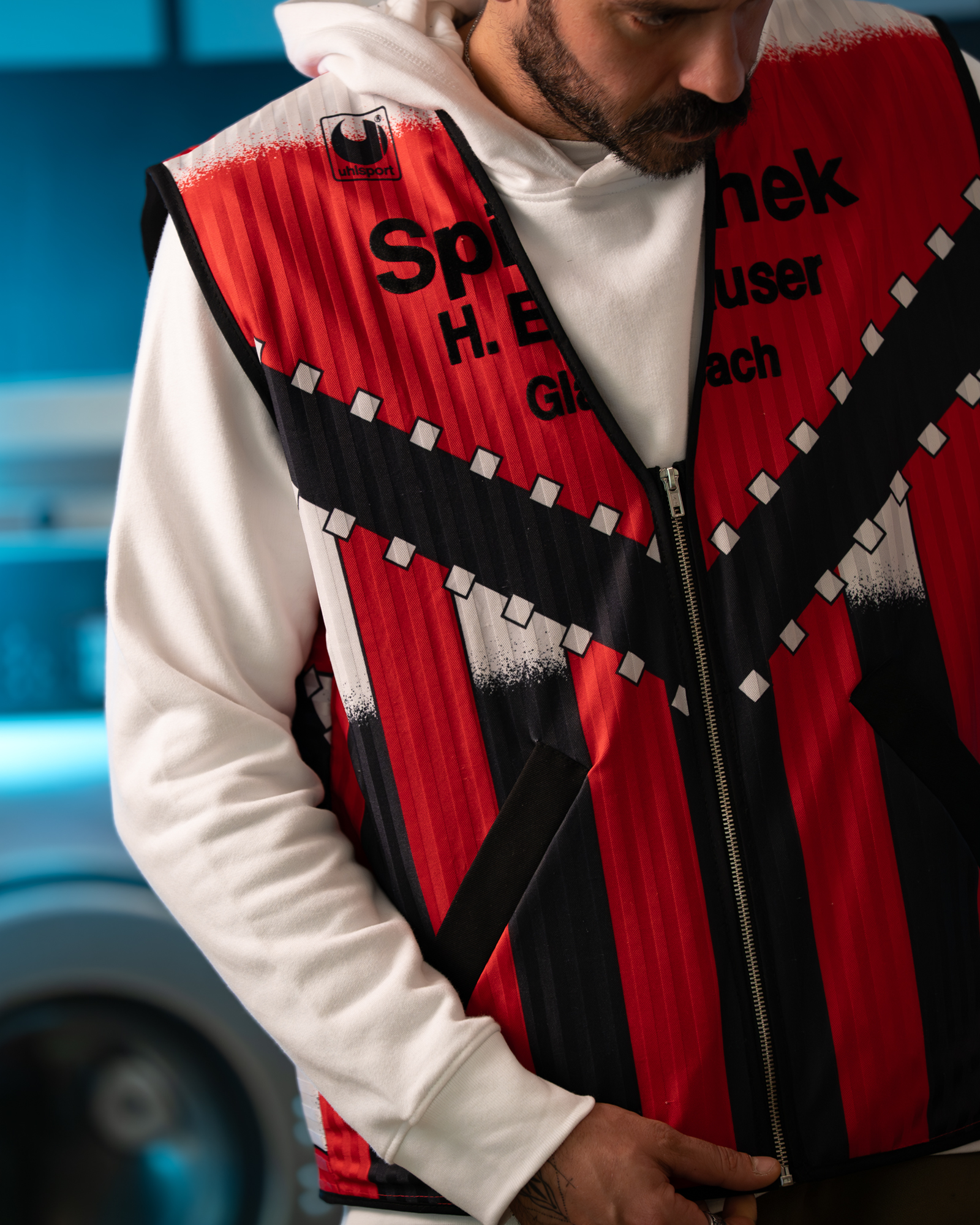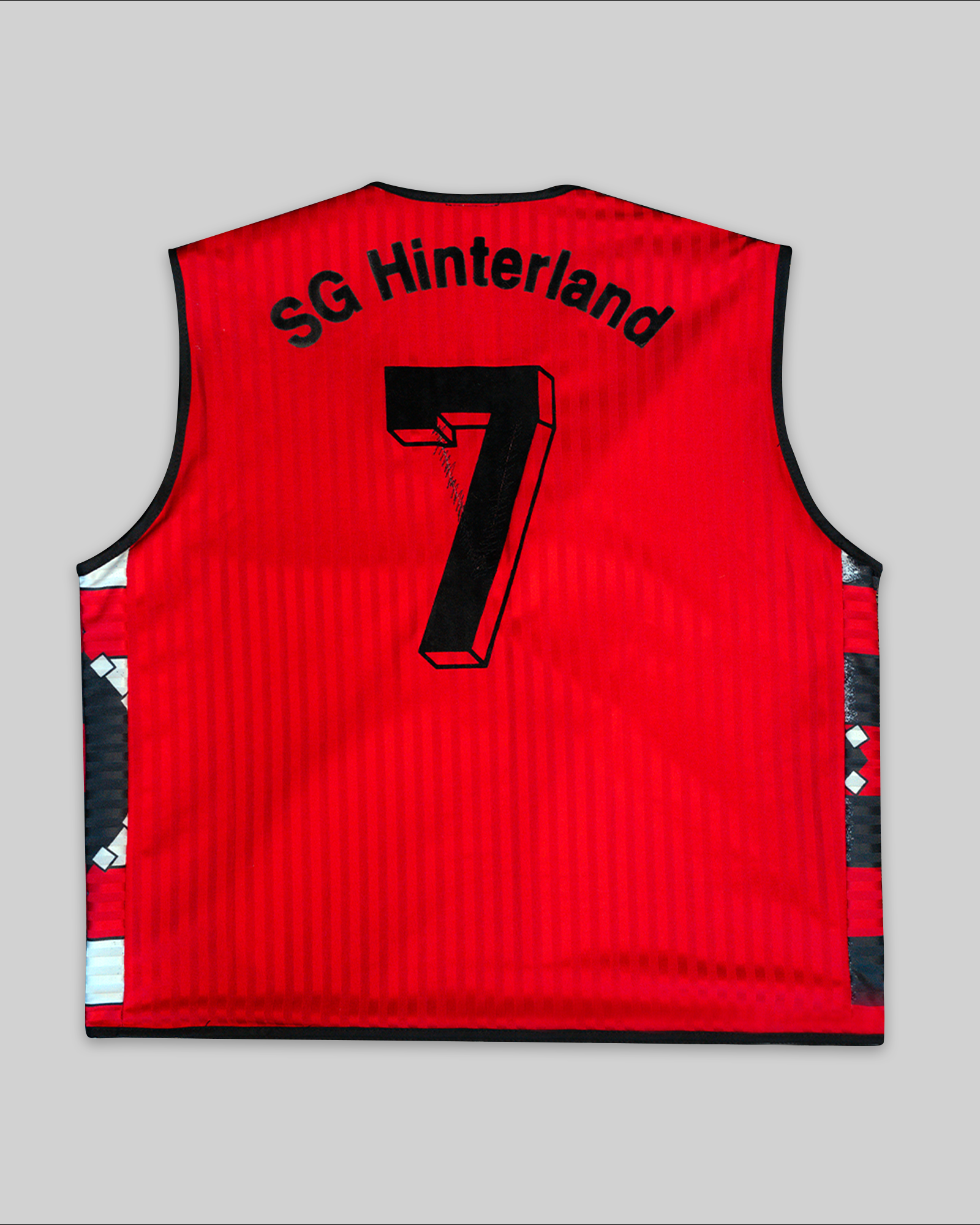Chaleco de media temporada confeccionado a partir del reciclaje de una camiseta de fútbol vintage.