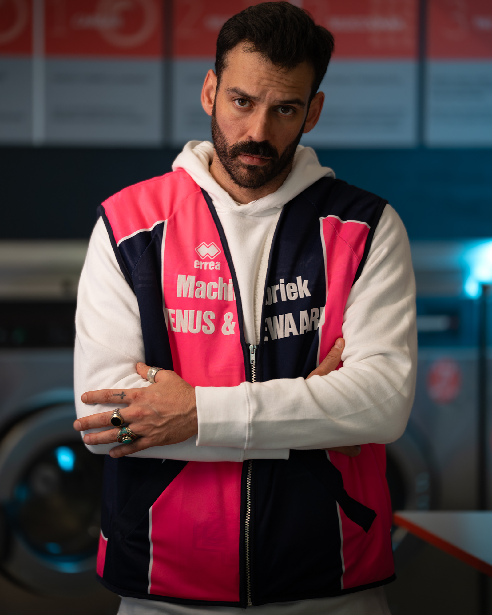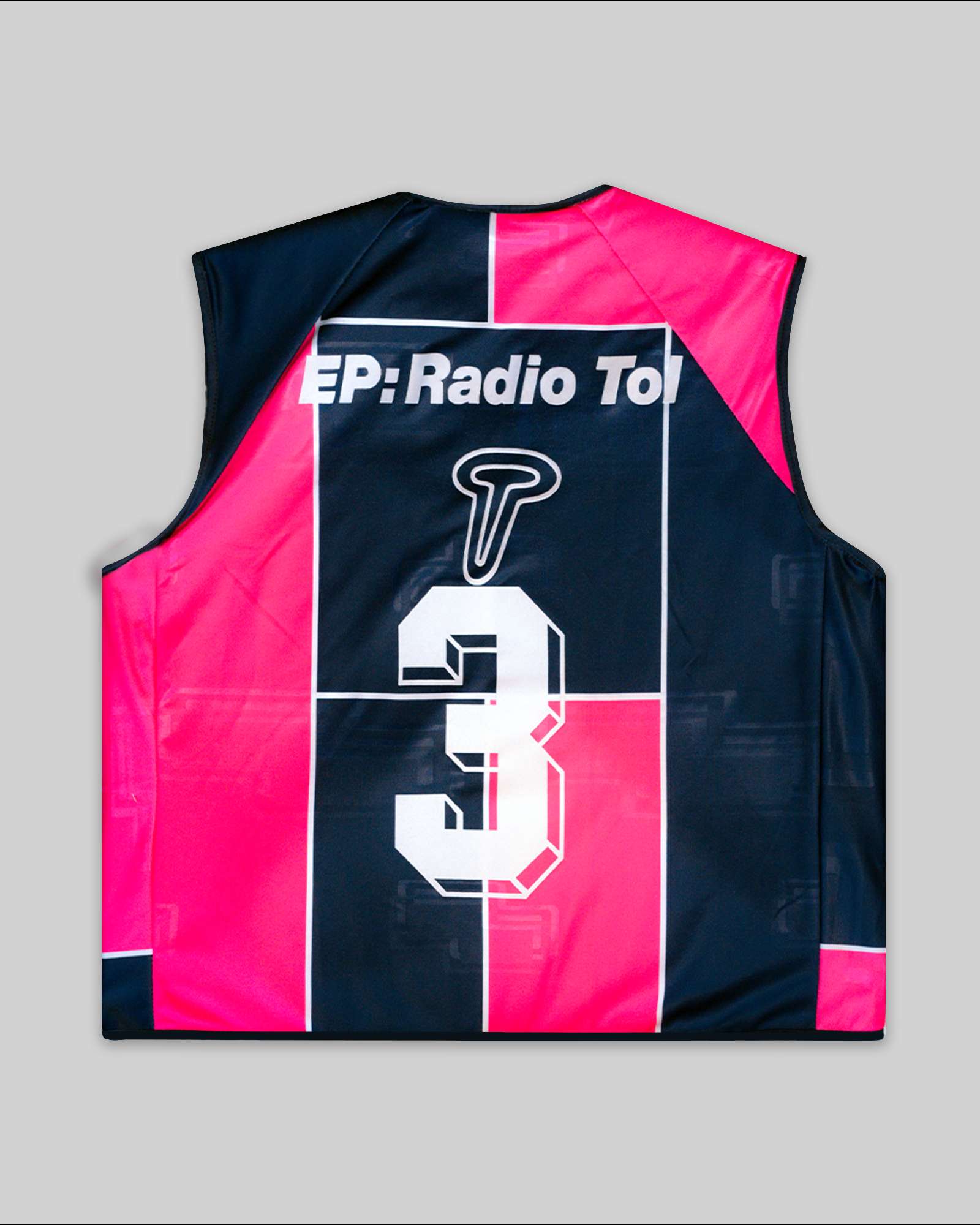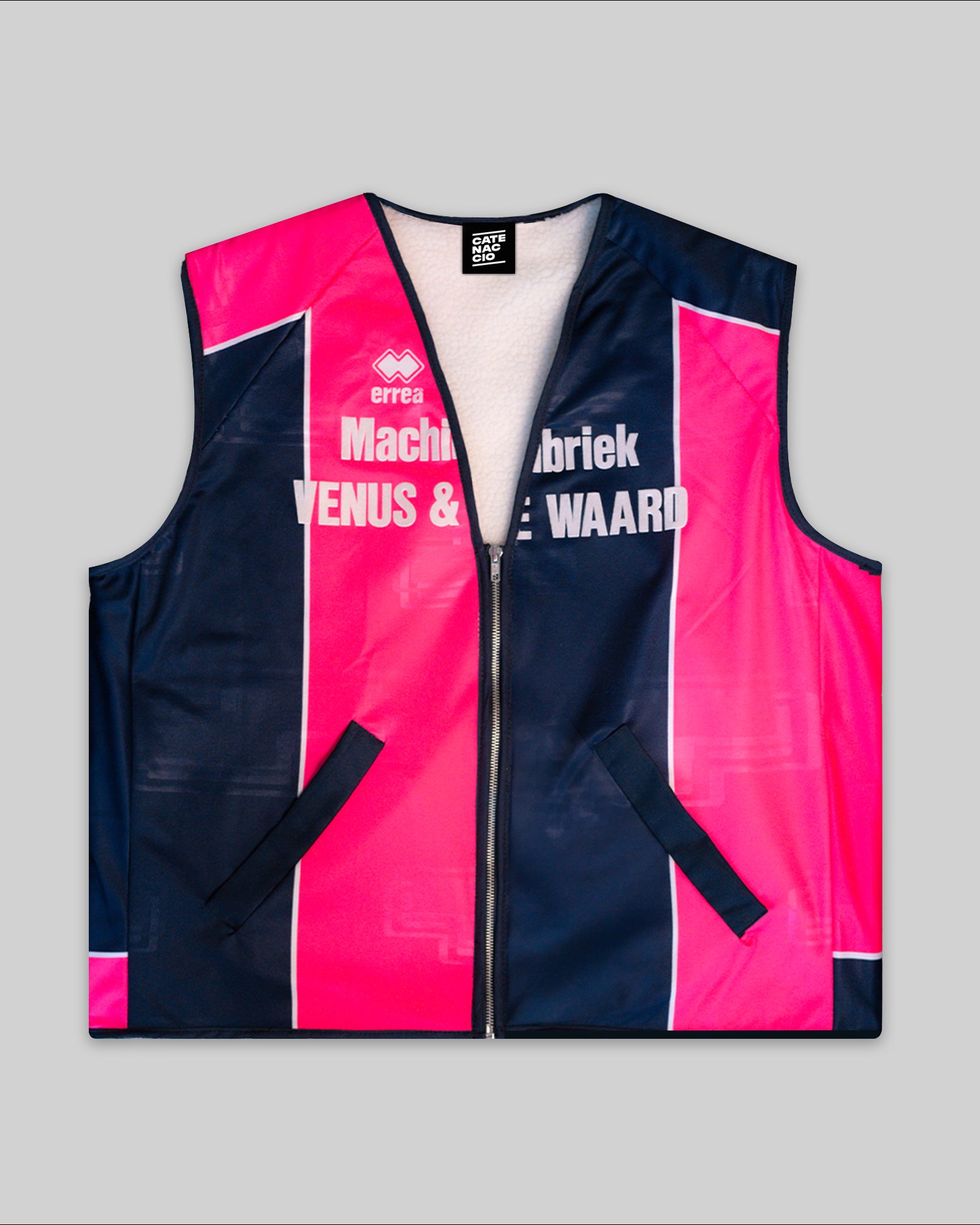 Chaleco abrigado confeccionado a partir del reciclaje de una camiseta de fútbol vintage.